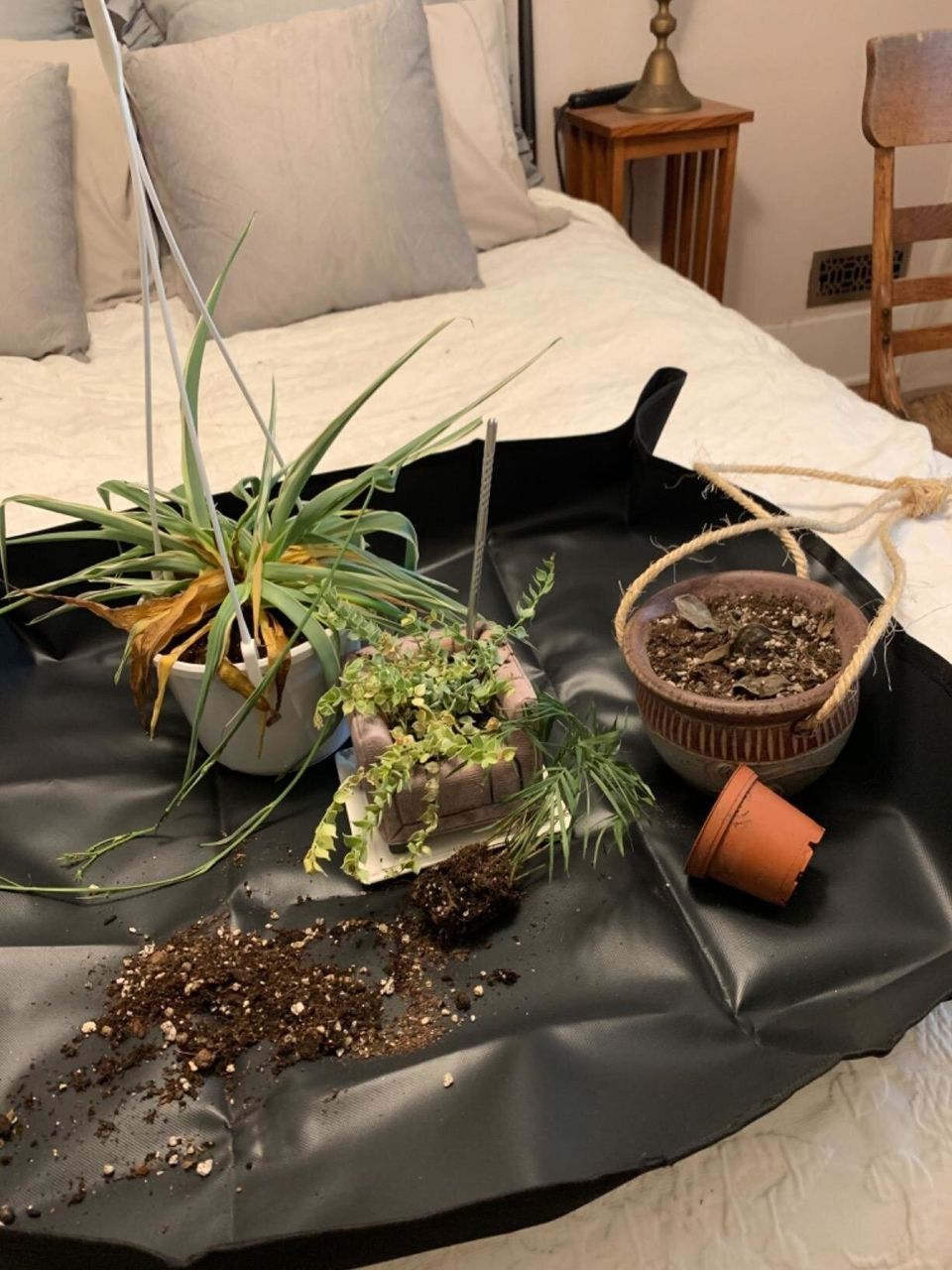 A waterproof repotting mat