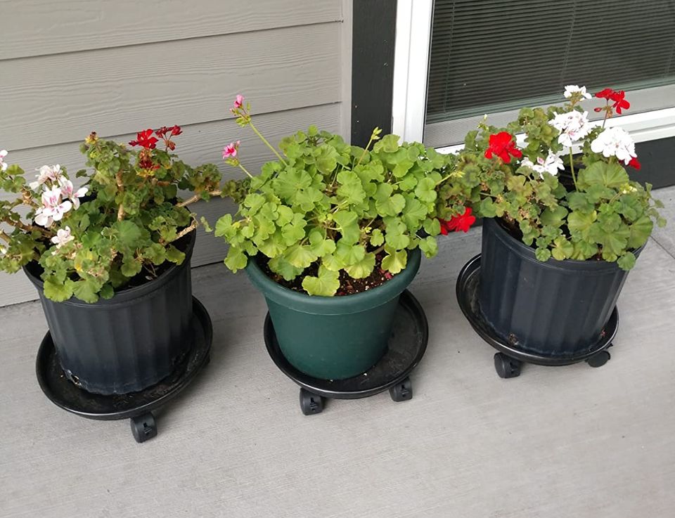 A pack of three rolling plant caddies