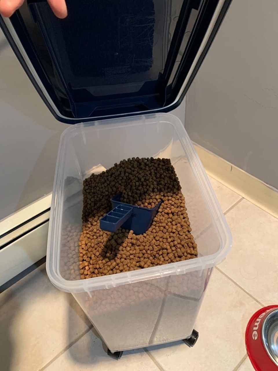 Promising review: “This is AWESOME. I wish I found this years ago. The castors roll well, even on carpet. The smaller bin is a great addition. We keep it on top of the big bin and fill it up as needed. Less bending over to feed the herd of puppies. The scoop is sturdy and easy to handle without being flimsy or too heavy. It’s been dropped by little hands repeatedly and no cracks or breaks. Honestly, I cannot find a negative on it. I really like it.” — Amy T