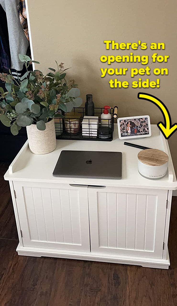 “I agonized over which cat furniture to choose to hide my cat’s litter box when moving to a smaller apartment space…I am happy I went with this one, which looks really nice. The instructions were surprisingly good and easy to follow; putting it together was simple. You can put the door on either side, and you can also leave out the middle part to fit a larger box.” — Wynne
