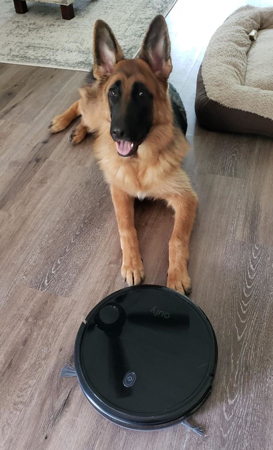 Promising review: “After running Eufy for nearly two months now, I can confidently say I absolutely LOVE it! It is amazing on my hardwood floors. It picks up sooo much fine dust brought in by my two German Shepards! They shed year-round! And it’s super effective with pet hair! Wow! I use Eufy once a day for a little more than hour, emptying and cleaning the brushes out about three to four times during use. It seriously has been life-changing, keeping my floors cleaner than sweeping! Great purchase and I would highly recommend!!” — Jacqueline M