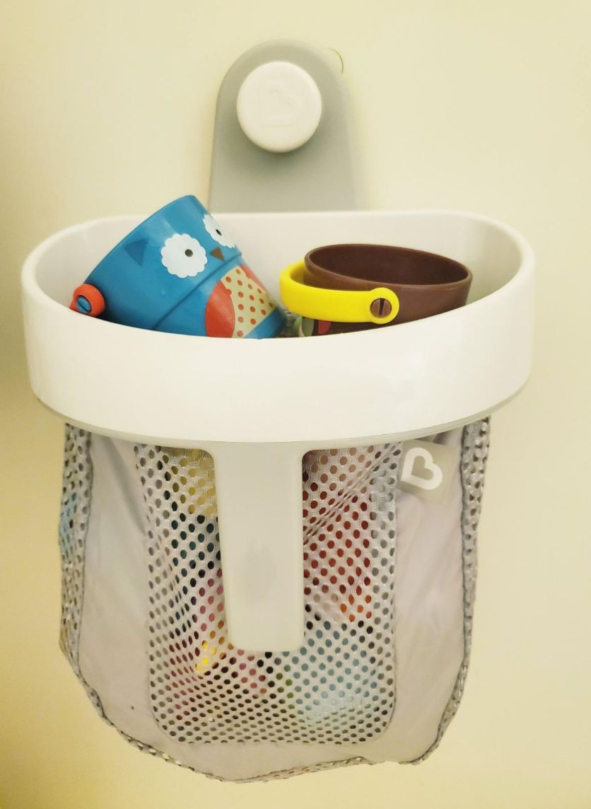 A quick-drying mesh bath toy storage bag parents swear by for quick and easy cleanup