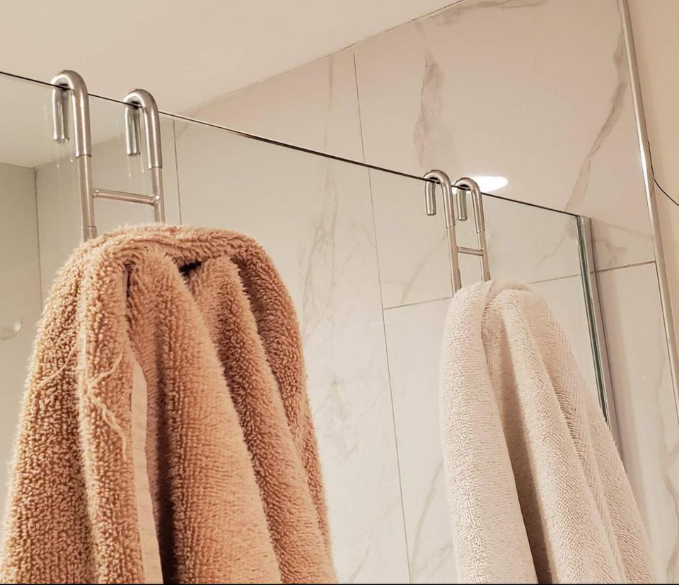 A set of shower towel hooks *perfect* for frameless and glass shower doors