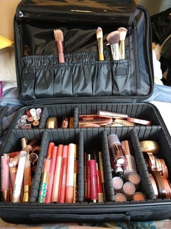 A marble makeup bag designed with completely adjustable compartments