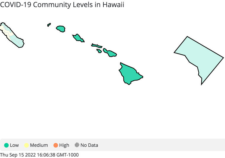 The U.S. Centers for Disease Control and Prevention has categorized all four major counties in Hawaii as green, low-level communities for COVID-19.