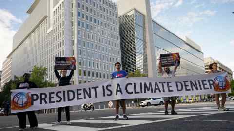 The US is the largest shareholder in both the IMF and the World Bank, regarded as a laggard in financing climate change action under its president David Malpass, who drew fire this week after repeatedly failing to answer directly a question about his acceptance of climate change science.